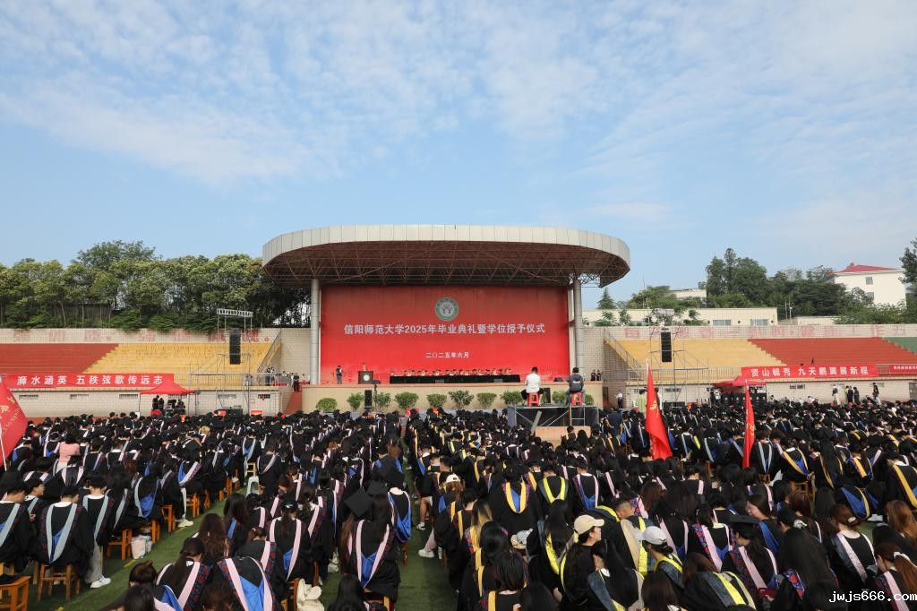 信阳师大新闻网讯 6月5日,我校在西田径场举行2025届毕业生毕业典礼暨学位授予仪式。校领导、校学位评定委员会委员、各学院(书院)和相关职能部门负责人、教师代表、毕业生家长代表、2025届全体毕业生和在校学生代表参加了典礼。典礼由副校长王娟主持。