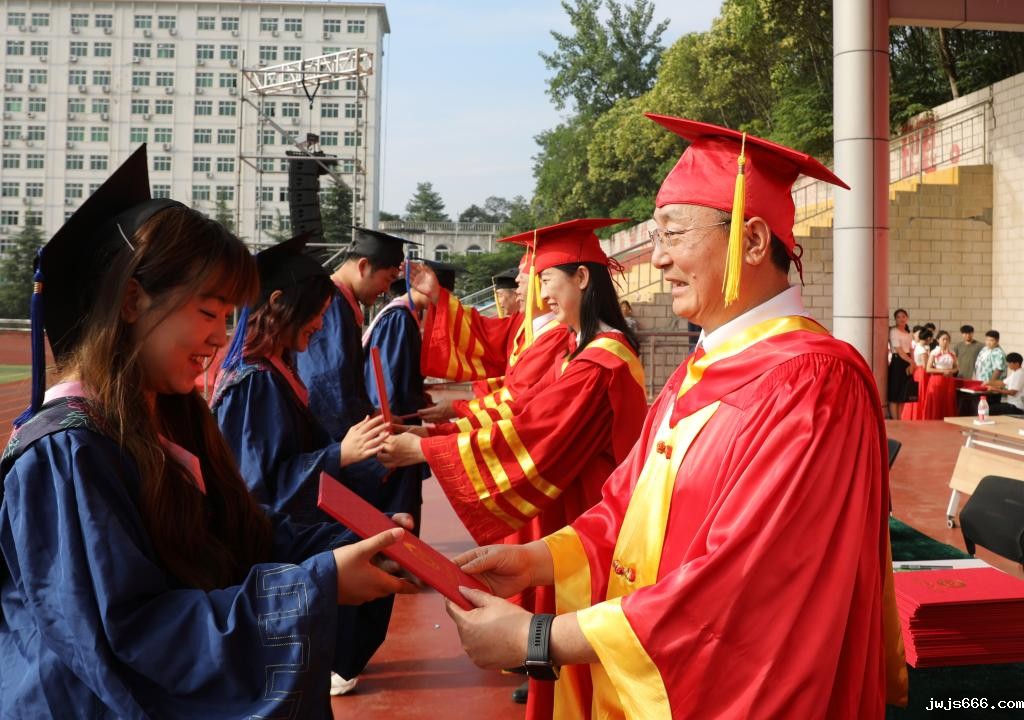 在热烈的掌声中,校领导、校学位评定委员会委员代表为毕业生代表颁发毕业证书、学位证书。