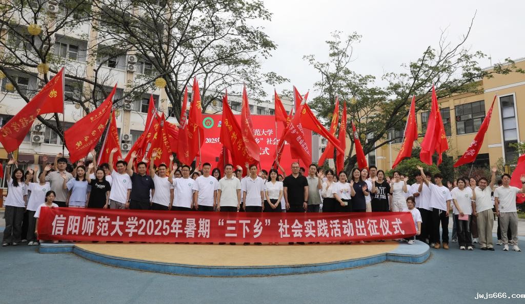 信阳师大新闻网讯 6月25日,我校2025年大学生志愿者暑期“三下乡”社会实践活动出征仪式在心语广场举行。校党委副书记、工会主席岳宗德出席并授旗。