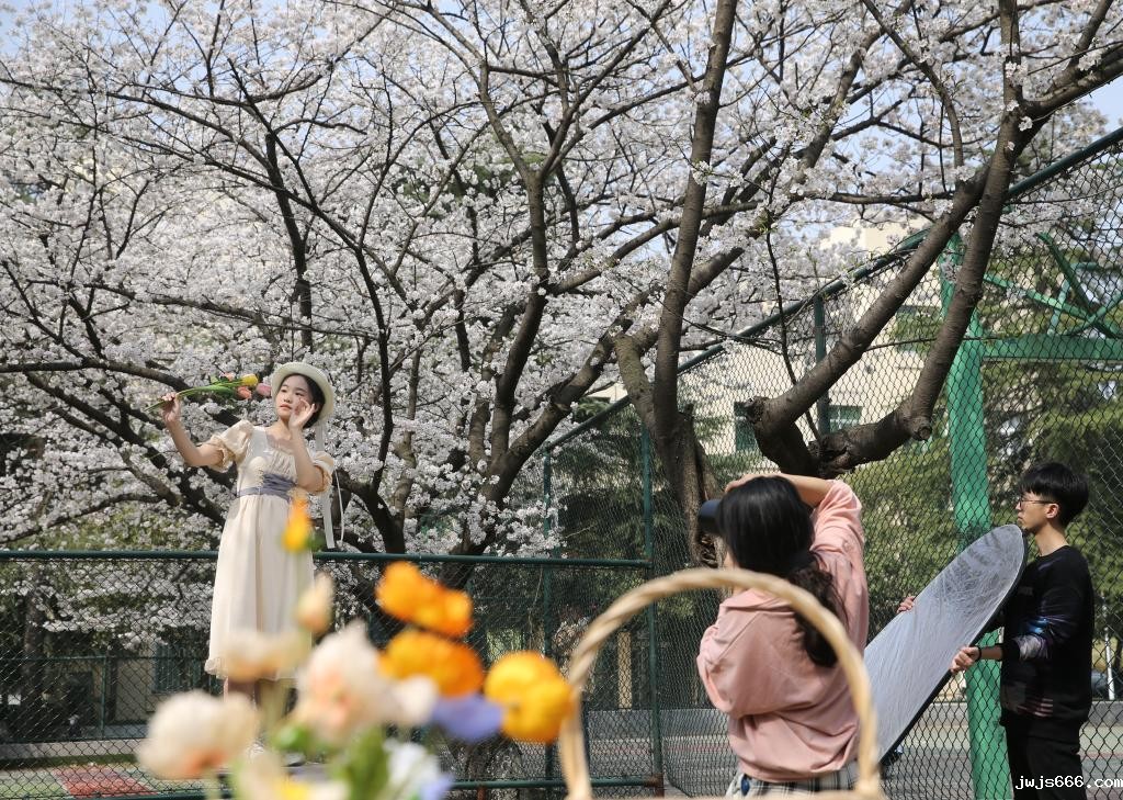 携一本小说,登上名贵园,园林入口处,几处早樱开得正旺,一阵微风轻拂而起,带来了远方不知名的醉人花香,却也将树枝上的樱花带离枝头,鞠一捧樱花花瓣,随风洒去,花瓣在风中起舞,像是粉色的轻纱随风浮动,让人不禁怀疑是在梦中,日光清澈透明,似轻薄流动的白纱,给园林覆上一层这个季节特有的温暖,站在一处高地向下望去,柳绿桃红,春光搁浅;樱花灿灿,东风渐暖;绿柳拂堤,天鹅戏水;儿童嬉戏,蜂蝶起舞;幼鸟啾鸣,春日呢喃。游花,赏园,观春蚕;沐雨,听风,观春蚕。我想,这些大概是这个季节最美好的事物了吧。
