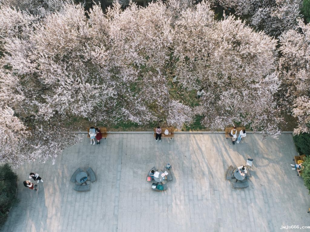园林深处,是一片樱花林,倚树坐下,脚边不知名的草儿探出头,像是在与我打招呼,轻轻抚摸她嫩绿的发辫,揉揉她的腰肢,打开书本,戴上耳机,这一系列动作很是缓慢,怕惊扰林中的蜂、蝶和那些悄悄苏醒在这个季节的无名生物,也享受着耳边动人的音符,生活的美好也不过如此了吧,许是过于舒适,竟然感受了一丝倦意,朦胧之中,只能感觉到花瓣擦过我的脸颊,落在我的身上、手上……
