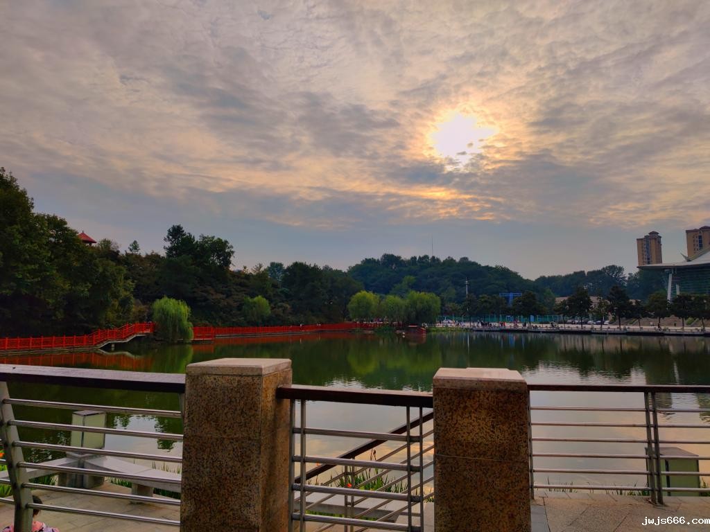 不知过了多久,睁开眼睛,已是傍晚,圆圆的太阳像是刚从冰箱中拿出来的鸭蛋黄,褪去了刺眼的光芒,变得分外柔和,橙黄的边缘镶嵌着明亮的赤金,在西边的天空中颤颤悠悠地挂着,这是一天中最盛大的景致。就像蘸满了各色颜料的画笔,在青白的天色里尽情挥洒。一时间落日烙金、云蒸霞蔚,深红与明黄相互晕染,灿金与浅紫交错相织,山下的半亩塘澄明透亮,像一面明镜,映出墨绿色的倩影。微风吹过,水面的余晖便被搅乱成一池碎金。夜至,花香悄然隐匿,凉风轻触面庞,远处的山脉在深蓝的天空下蜿蜒起伏,向着远处舒展开来,也抚平了我的心情,晚风和路灯下花树的光影相互交错,别有一番韵味,疏影横斜花摇曳……