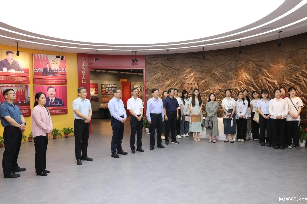 师生依次参观了“民主之光”“民主之路”“民主之花”及宪法墙,观看历史照片、文件资料、实物陈列和历史情境影视作品,沉浸式体验与感受革命老区信阳民主政治建设发展历程和全过程人民民主的生动实践。